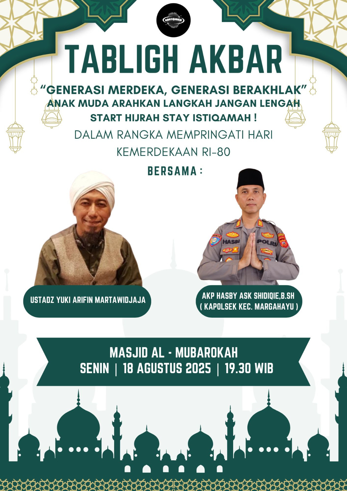 Bandung Kabupaten || gayortinews .net – Komitmen Kepolisian untuk masyarakat dibuktikan kehadiran Kepala Polisi Sektor (Kapolsek) Margahayu di acara Tabligh Akbar peringatan Hari Kemerdekaan RI ke-80 di Mesjid AL- Mubarokah RW.16 Desa Sayati, Kecamatan Margahayu, Kabupaten Bandung, (Selasa, 19/08/2025).