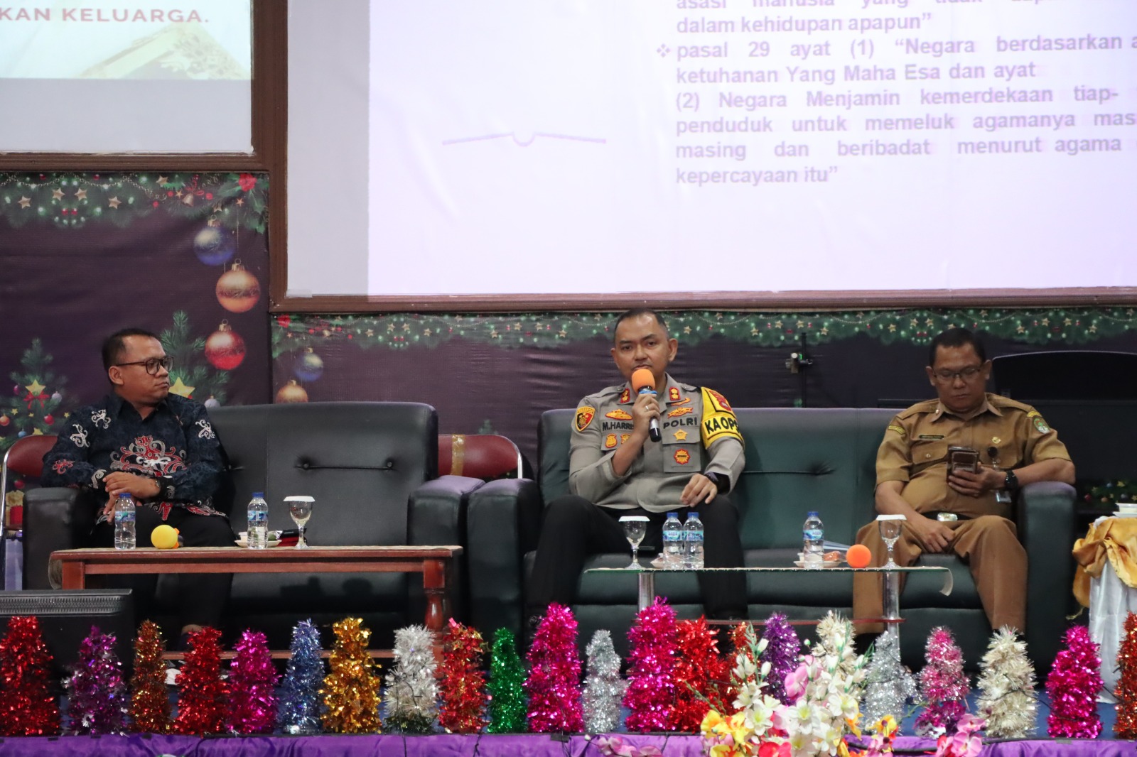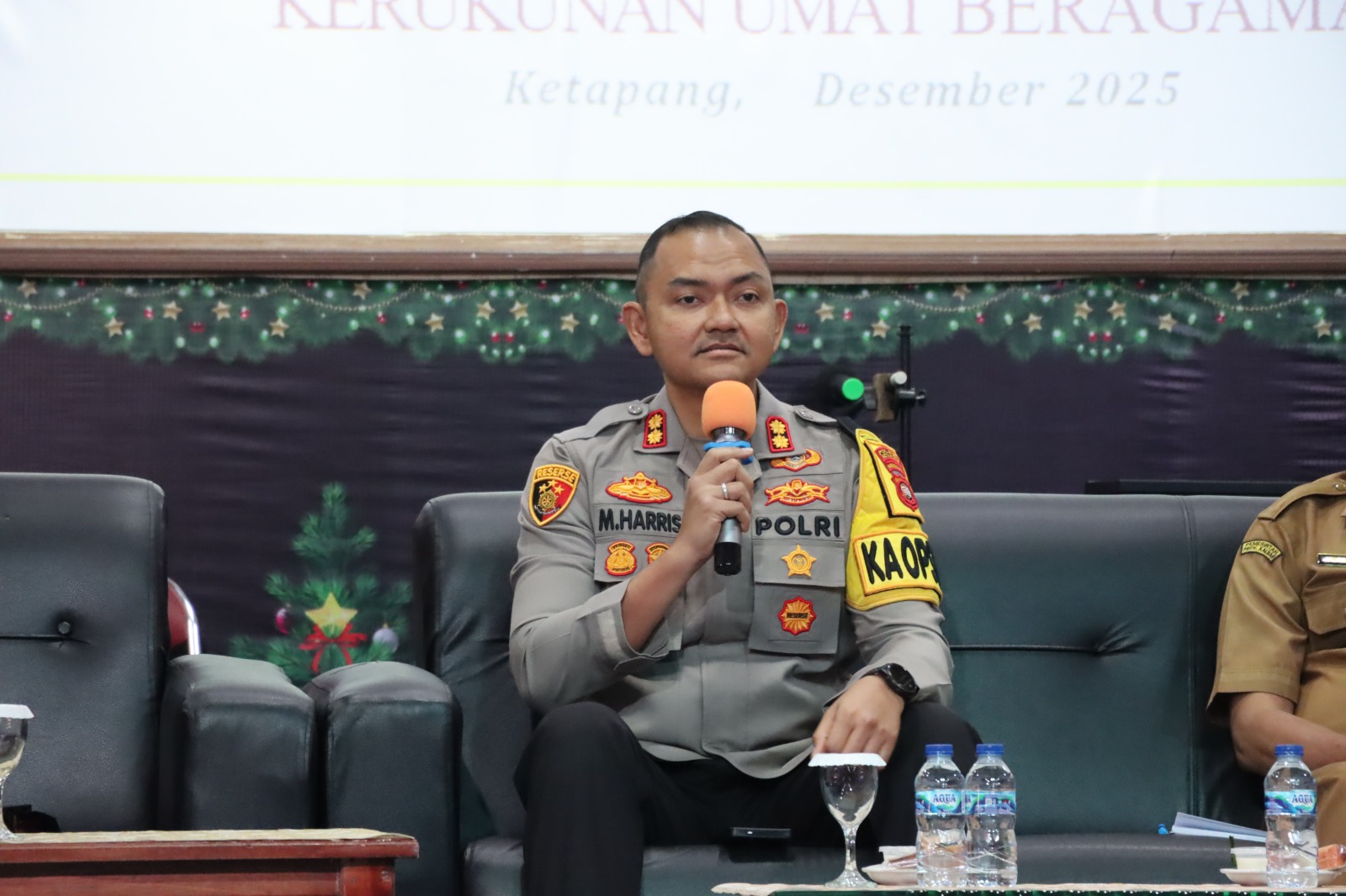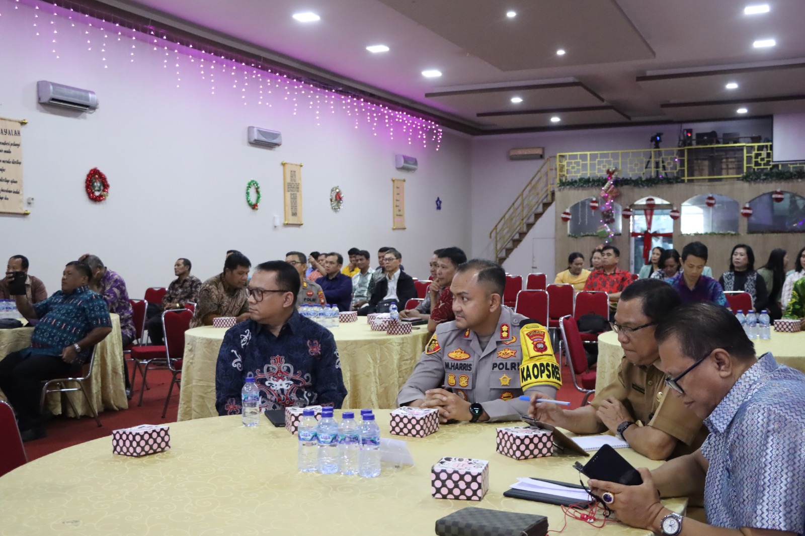 Ketapang, Polda Kalbar || gayortinews.net – Kapolres Ketapang AKBP Muhammad Harris, S.H., S.I.K., M.I.K., CPHR menghadiri kegiatan Rapat Kerja dan Natal Bersama Persatuan Gereja Kristen (PGK) Ketapang yang mengusung tema “Fondasi Terciptanya Kerukunan Dalam Masyarakat (Ditinjau Dari Sudut Pandang Polisi Sebagai Aparat Keamanan Masyarakat)”. Kegiatan tersebut berlangsung dengan penuh khidmat, hangat, dan sarat nilai kebersamaan, pada Senin (29/12/2025).