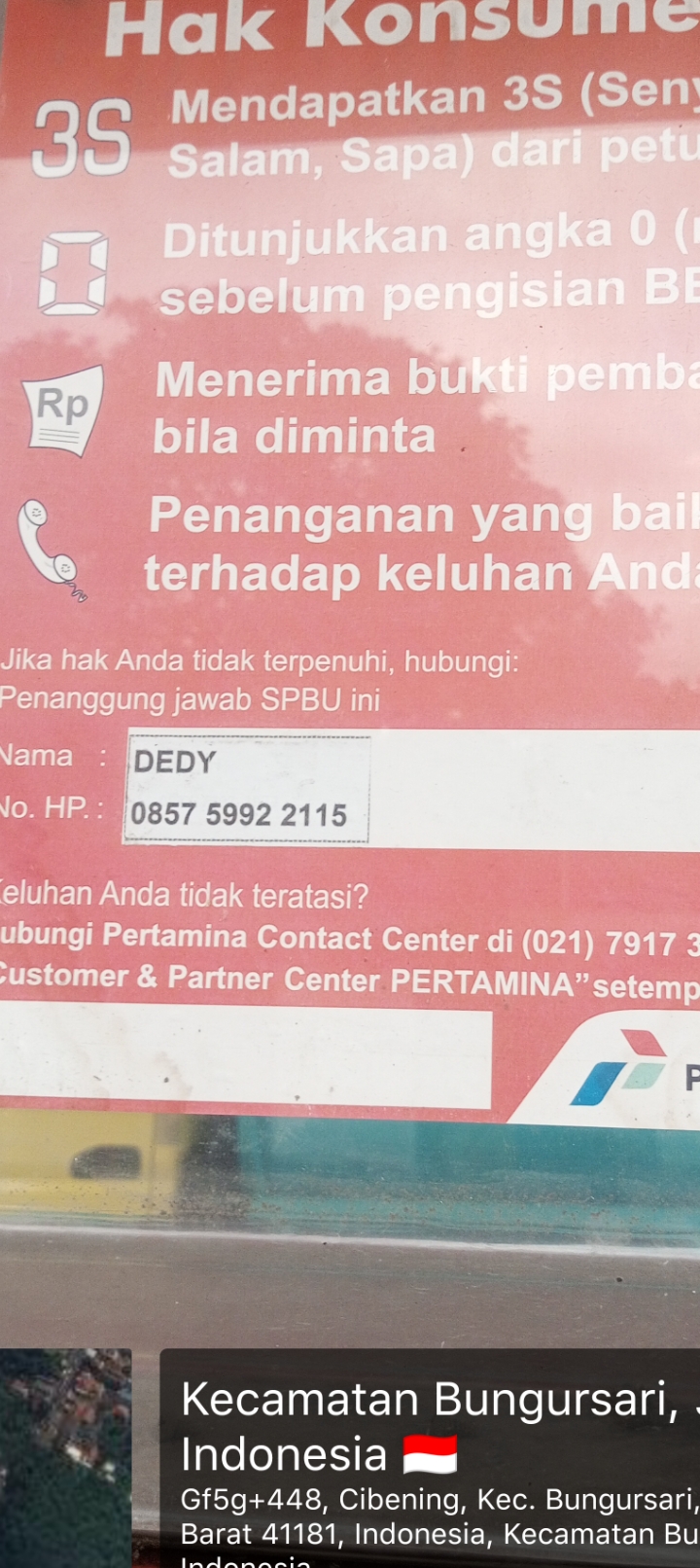 Betapa beraninya pihak SPBU memberikan informasi palsu mengenai papan hak konsumen yang menulis nama dan nomer telpon penanggung jawab SPBU secara fiktif.